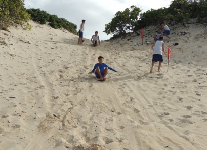 Os alunos percorreram trilhas, dunas, fizeram experimentos pedagógicos no contato direto com a natureza e a biodiversidade de ecossistemas, tudo orientado pelos profissionais da Escola das Dunas e pelo Guia da Mandacaru Viagens e Turismo. Como lazer, tomaram banho de lagoa, brincaram nas dunas, desceram de tábua de morro e tirolesa.
