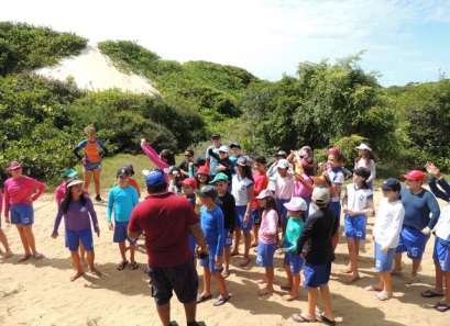 Dentro do Projeto Na trilha do Conhecimento, os alunos do 5º ano na Escola das Dunas, na Praia de Pitangui, município de Extremoz, um dia de muito aprendizado e contato direto com a natureza.