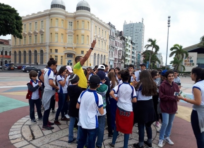 Os alunos conheceram Recife Antigo para City Tour Histórico e Cultural, passando pelo Marco Zero e rua do Bom Jesus, com visita ao Museu Cais do Sertão, embaixada dos bonecos gigantes e paço do frevo.