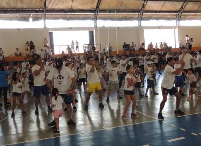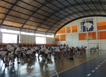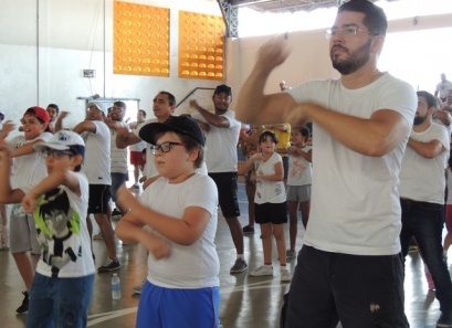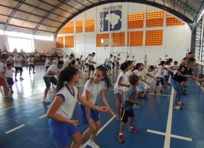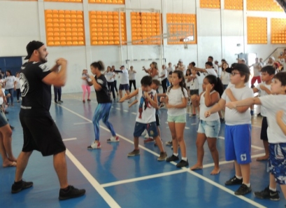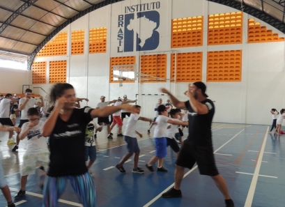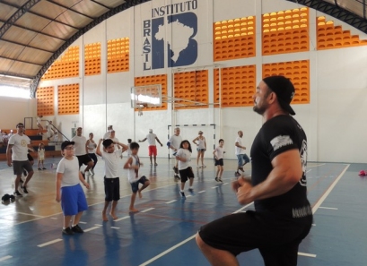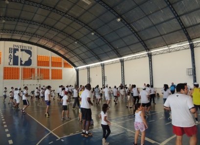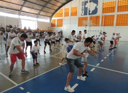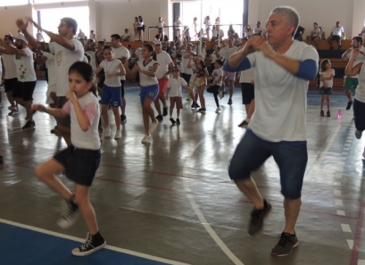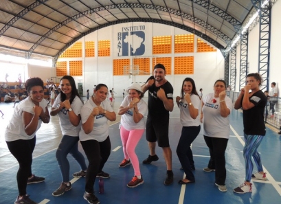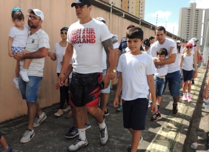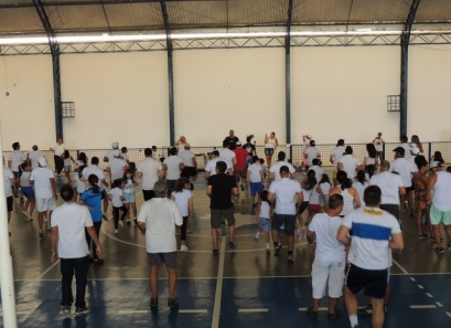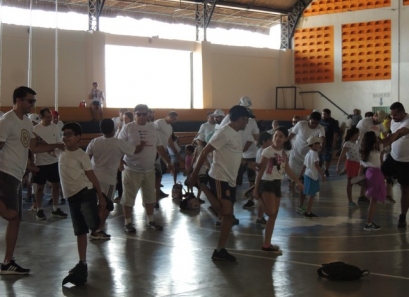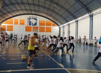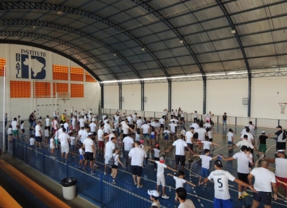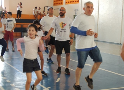 Após a caminhada, nem nosso ginásio os pais participaram de uma aula interativa de body combat e depois jogaram uma mini torneio de futsal.