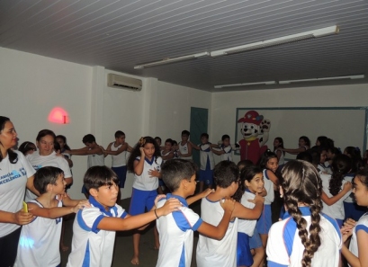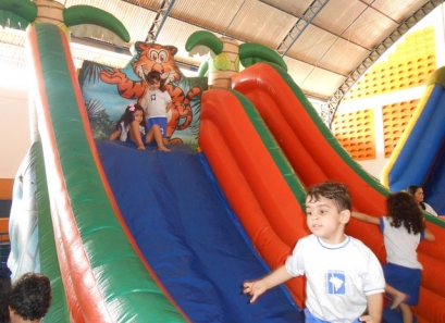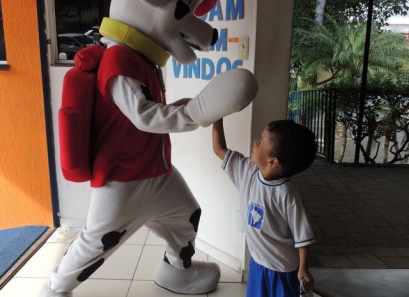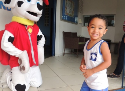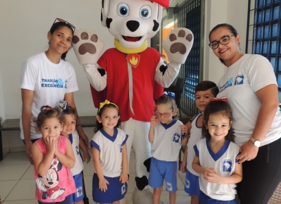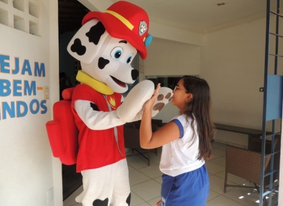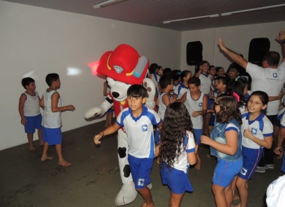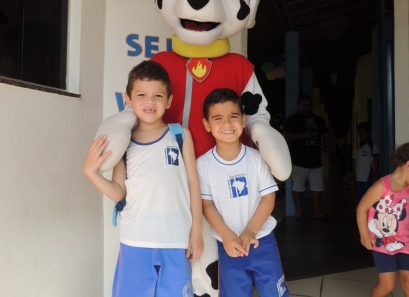 O Dia das Crianças foi comemorado do jeito que a criançada gosta: com muita alegria e diversão. Nosso ginásio teve seu espaço tomado por muitos brinquedos. Também foi preparada uma boate kids com DJ e um espaço de pintura e balões. As crianças foram recebidas em nossa escola pelo Marshall, personagem da Patrulha Canina.