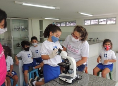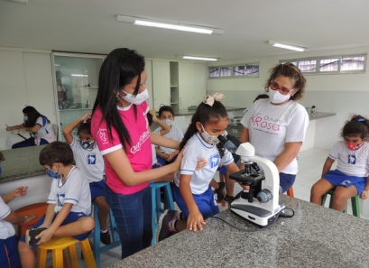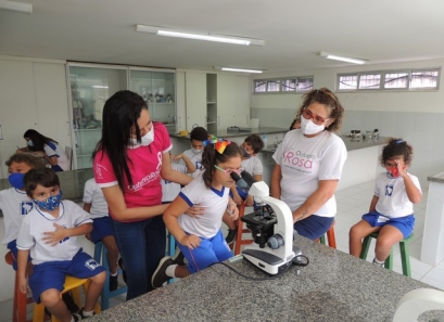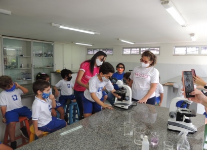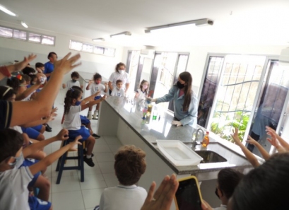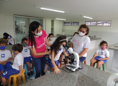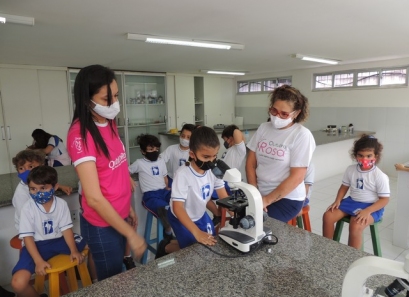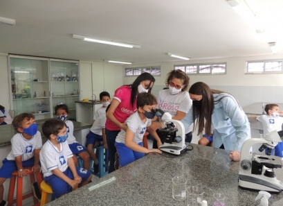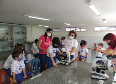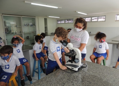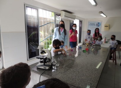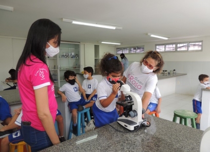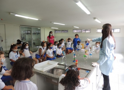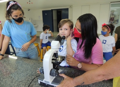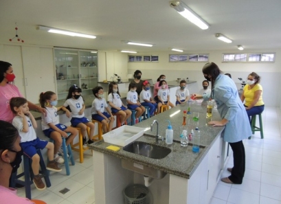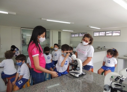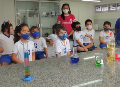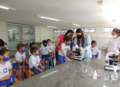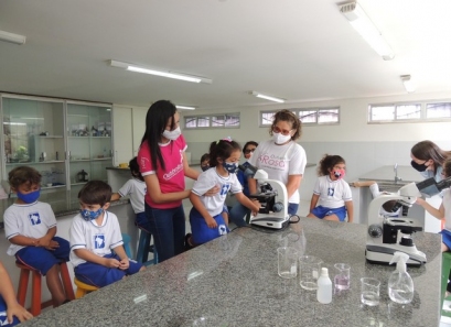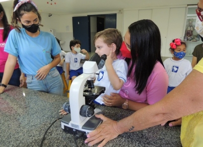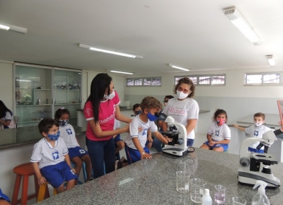 A Educação Infantil realizou uma aula no Laboratório de Práticas para participar de uma vivência que faz parte do projeto desenvolvido pela turma: Ciência em Ação! Sob orientação da professora Samara eles conheceram instrumentos de uso diário no laboratório, microscópio e puderam visualizar alguns experimentos como a Torre de Cores! A imaginação e a alegria acompanharam todos os momentos dessa turminha!