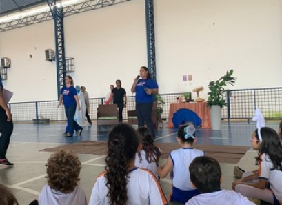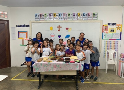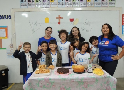 As nossas crianças vivenciaram hoje, 05 de abril, a Páscoa em nossa escola. A nossa equipe preparou um momento todo especial onde apresentaram e interagiram com as crianças um conteúdo didático sobre a Páscoa Cristã, apresentando seus símbolos e fatos históricos sobre a data. Os professores recriaram pequenos trechos da paixão de Cristo e de sua ressurreição. Os dois turnos foram finalizados com a Oração universal do Pai Nosso.
