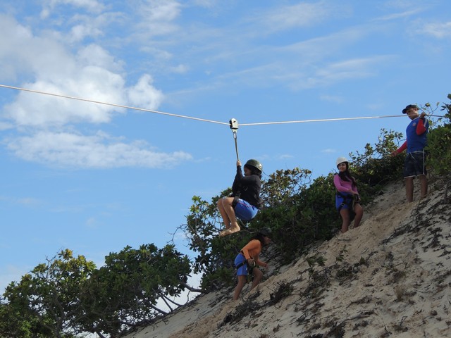Os alunos percorreram trilhas, dunas, fizeram experimentos pedagógicos no contato direto com a natureza e a biodiversidade de ecossistemas, tudo orientado pelos profissionais da Escola das Dunas e pelo Guia da Mandacaru Viagens e Turismo. Como lazer, tomaram banho de lagoa, brincaram nas dunas, desceram de tábua de morro e tirolesa.