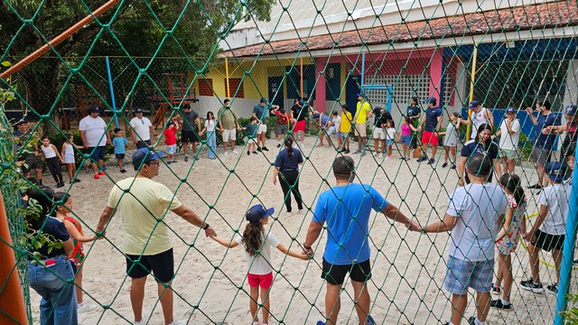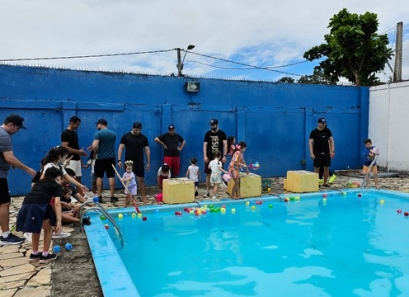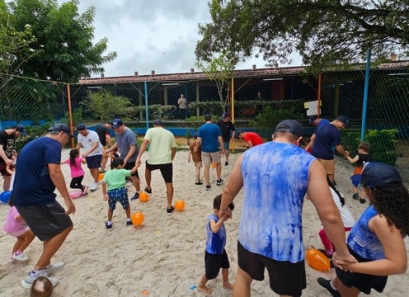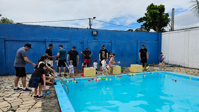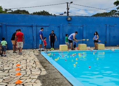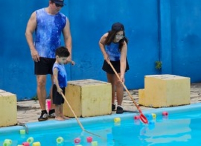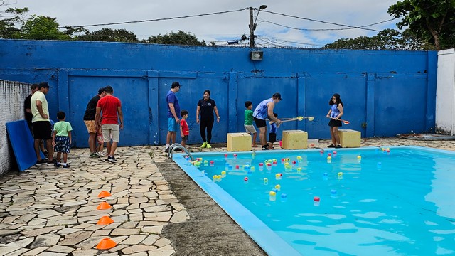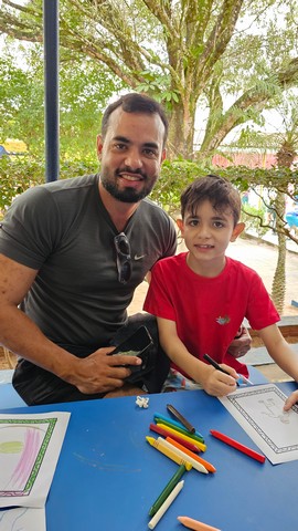 Pais e filhos puderam se divertir juntos em atividades especiais, como o desenho do autorretrato, além de momentos de integração e alegria no vôlei, basquete, ballet, futsal e até pescaria na piscina, onde a diversão foi garantida.