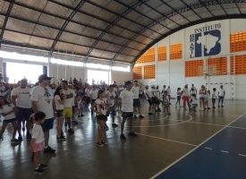 Após a caminhada, nem nosso ginásio os pais participaram de uma aula interativa de body combat e depois jogaram uma mini torneio de futsal.