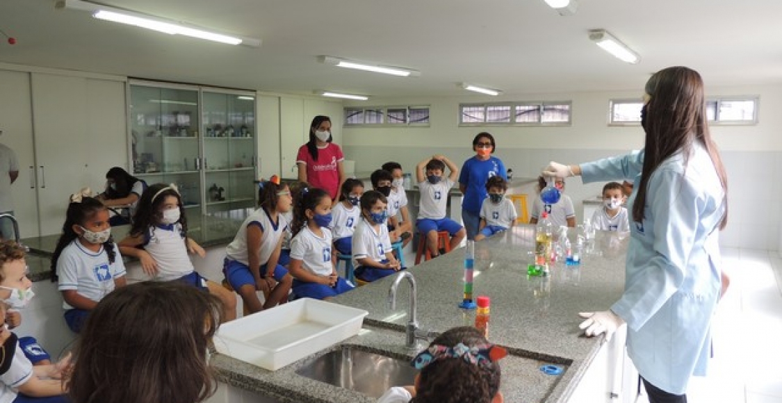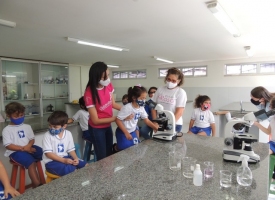 A Educação Infantil realizou uma aula no Laboratório de Práticas para participar de uma vivência que faz parte do projeto desenvolvido pela turma: Ciência em Ação! Sob orientação da professora Samara eles conheceram instrumentos de uso diário no laboratório, microscópio e puderam visualizar alguns experimentos como a Torre de Cores! A imaginação e a alegria acompanharam todos os momentos dessa turminha!